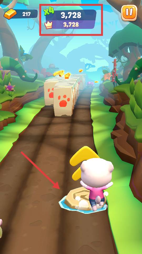 3、注意上方得分倍数和得分进度遇到脚下漩涡道具要踩上去能获得增益效果。