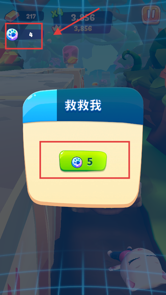 4、角色失误会弹出救援窗口使用五个指定道具即可继续游戏要留意道具数量是否足够。