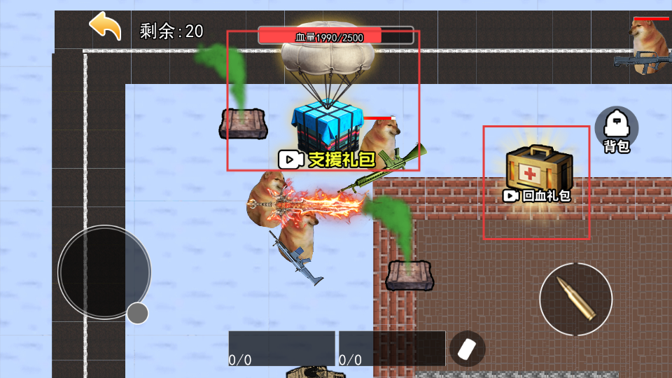 2、操控角色战斗,留意血量,靠近【支援礼包】【回血礼包】获取资源。