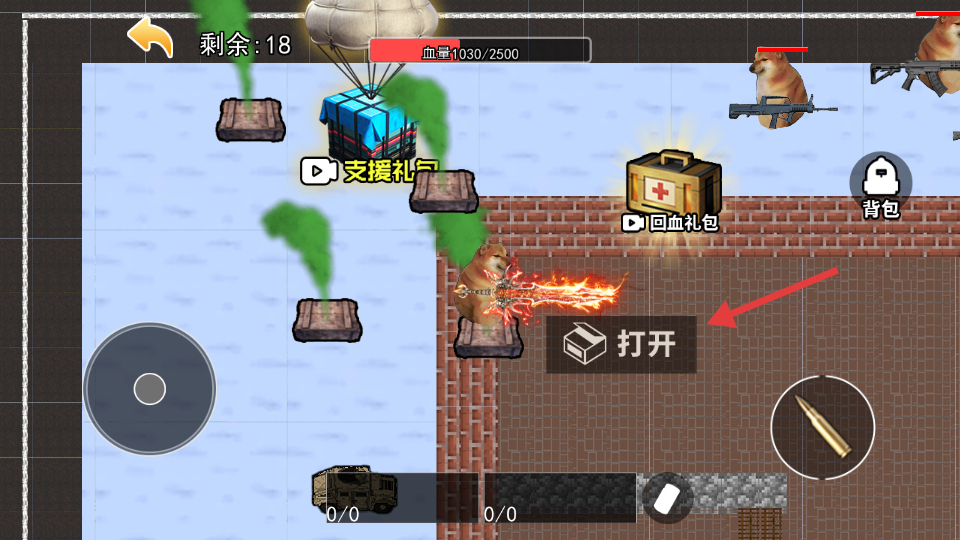 3、战斗中点击【打开】,解锁物资箱,补充弹药或道具。
