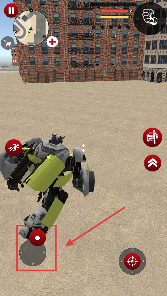 3、操控机器人时,用左下角红框内的【移动-摇杆】控制角色位移,调整站位应对状况。