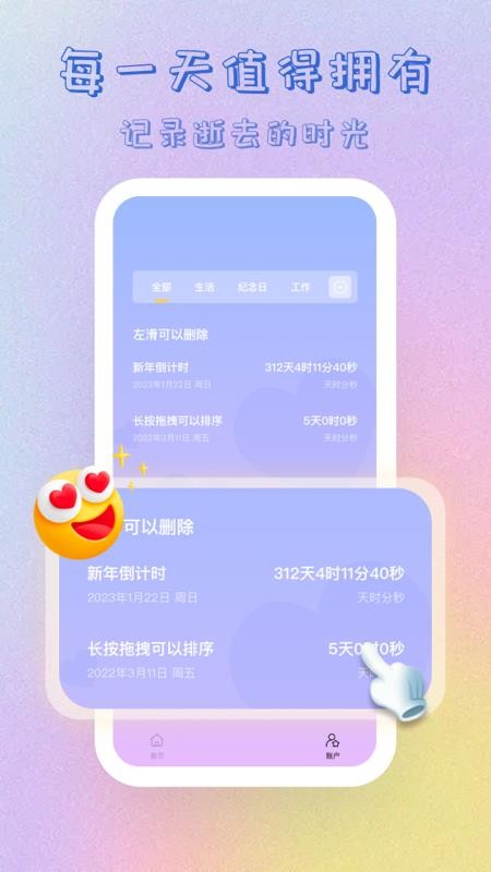 对自己添加的倒计时内容进行管理,以后可以在这里查询各个倒计时内容