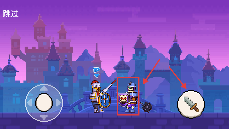2、移动后遇到持有【骷髅-盾牌】的敌人,需准备战斗,注意敌人的攻击姿态。