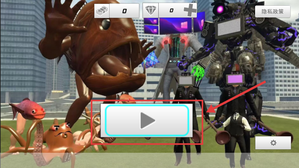 1、点击界面中央的【播放-按钮】开始游戏,注意上方显示的【资源-0】【钻石-0】为初始资源状态。