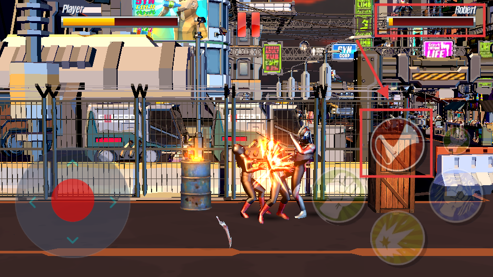 4、战斗中留意上方【Player】-【George】血条,可利用燃烧的油桶等环境元素辅助攻击。