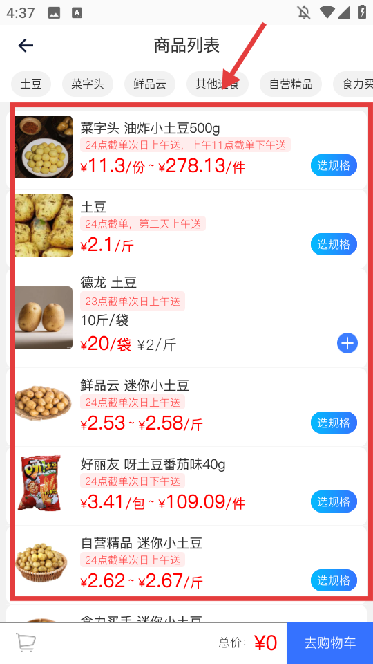 对于软件所提供的各种冷冻商品种类齐全,可以满足消费者的个人购物需求