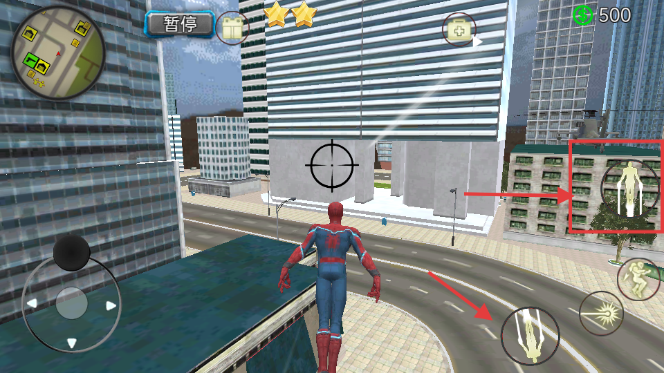 4、爬上高楼后点击右侧【巨人】技能图标变身,利用高空优势继续任务,注意小地图目标点。
