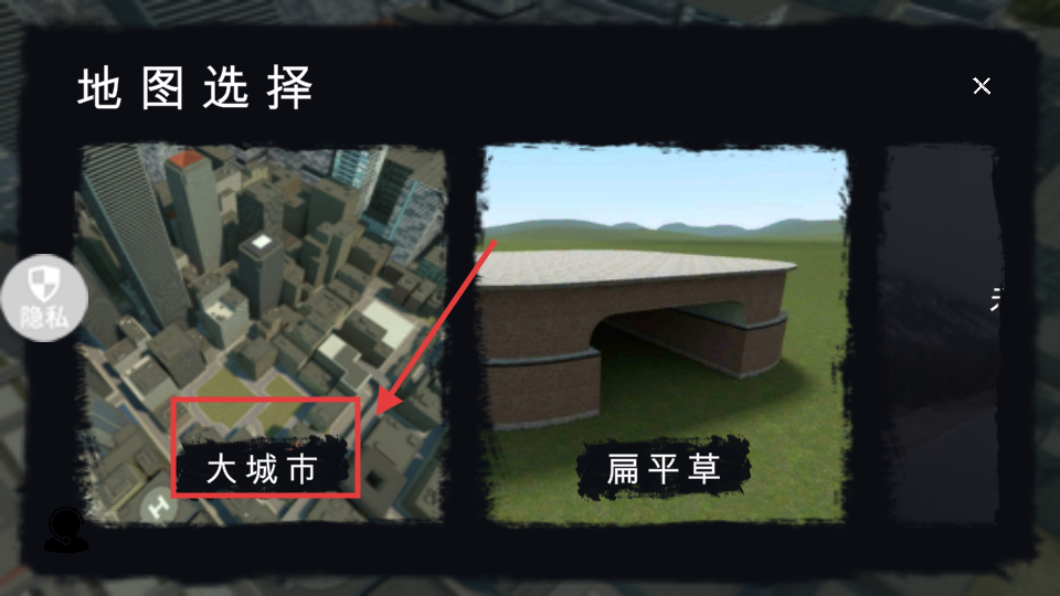 2、地图选择界面中,点击【大城市】地图选项,进入对应游戏场景。