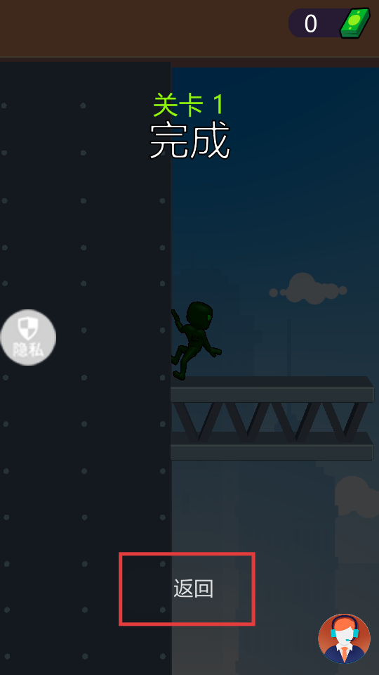 4、关卡完成后,点击下方【返回】按钮可回到主界面,准备后续挑战。