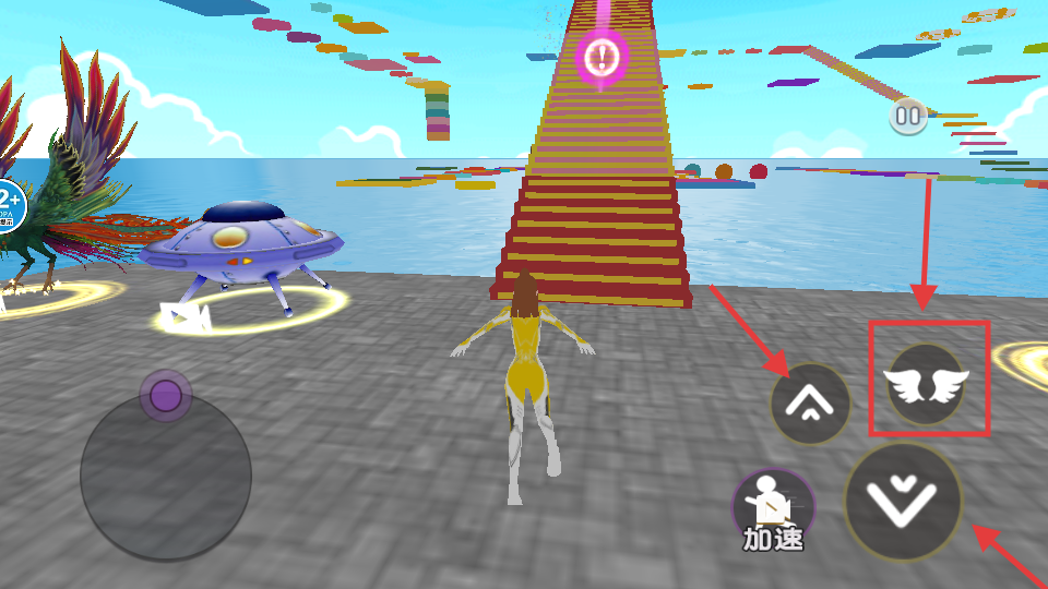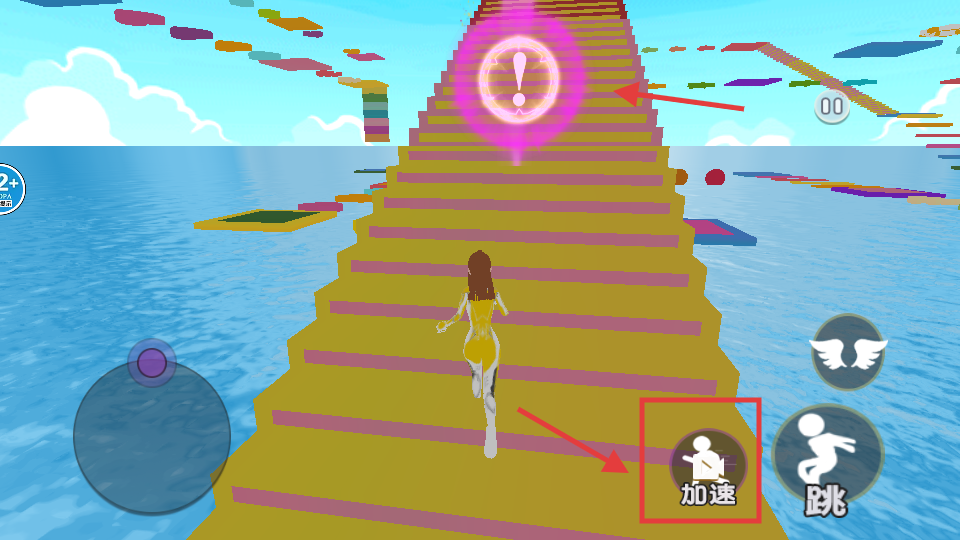 4、攀爬长阶梯时,点击下方【加速】按钮,提升移动速度快速到达阶梯顶部。