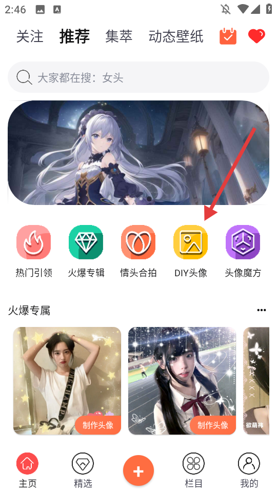 1、在主页点击【DIY头像】,进入DIY头像界面。