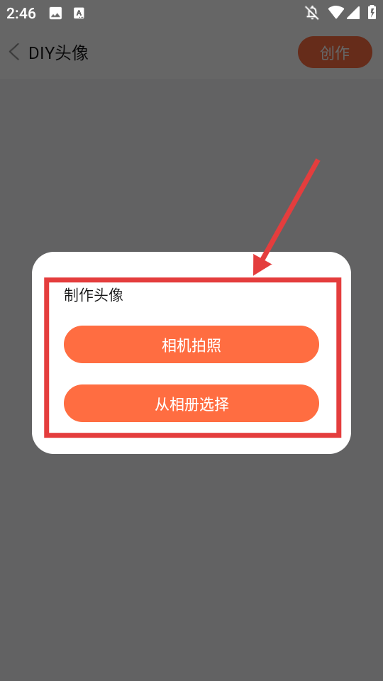 2、点击右上角【创作】,弹出制作头像的图片选择选项。