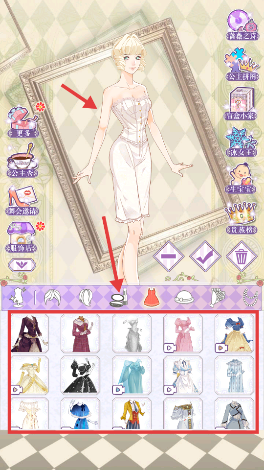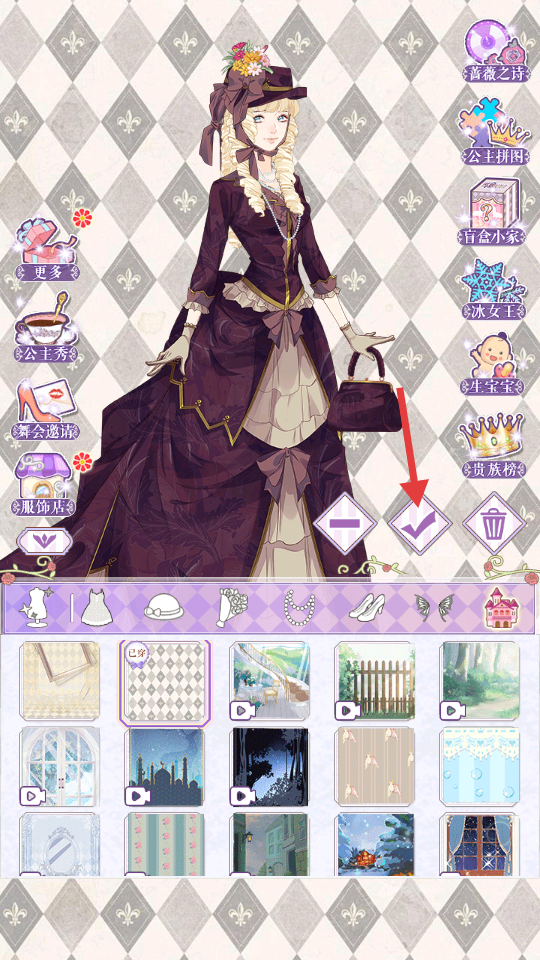 2、搭配好服饰、配饰等元素后,点击对勾按钮确认当前的装扮组合。
