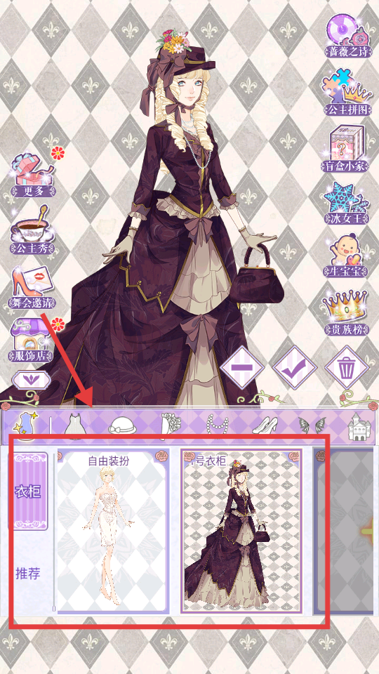 4、可在衣柜的“自由装扮”或已保存的装扮中,切换不同搭配方案,打造多种风格的造型。