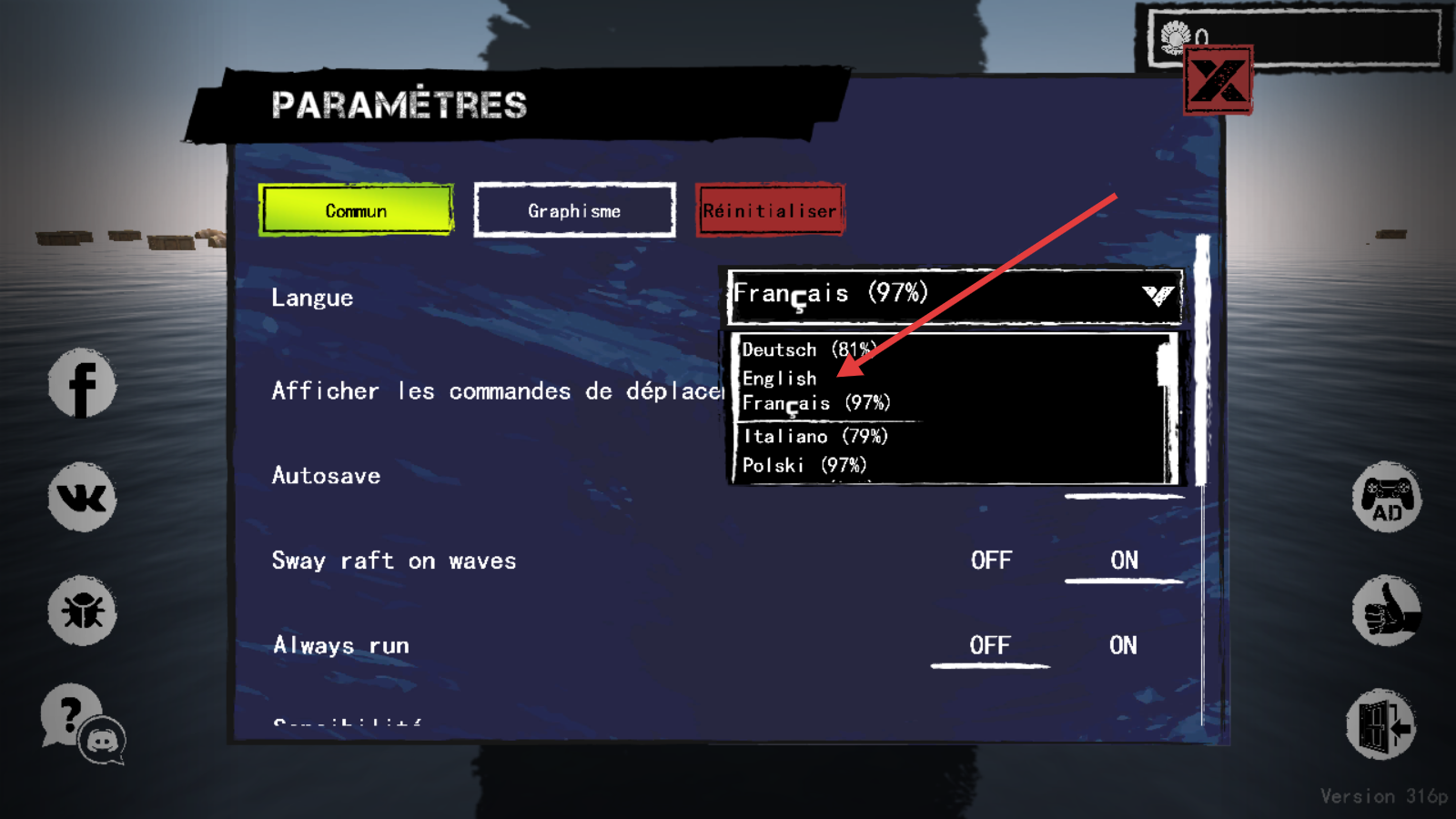 3、选择【English】,设置游戏语言。