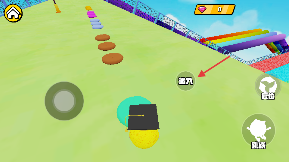 3、角色移动到【进入】按钮区域,点击该按钮即可进入彩色滑梯的跑酷赛道。