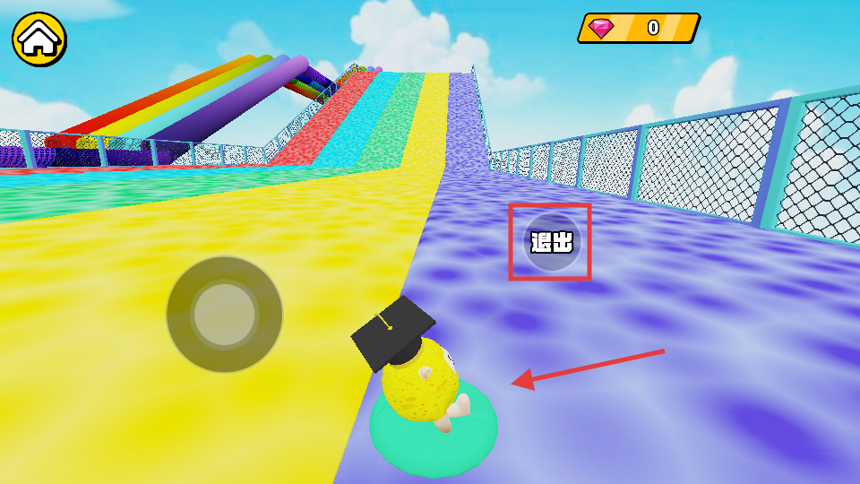 4、在滑梯赛道可操控角色沿色彩区域滑下,若需中断挑战,点击【退出】按钮返回场景。