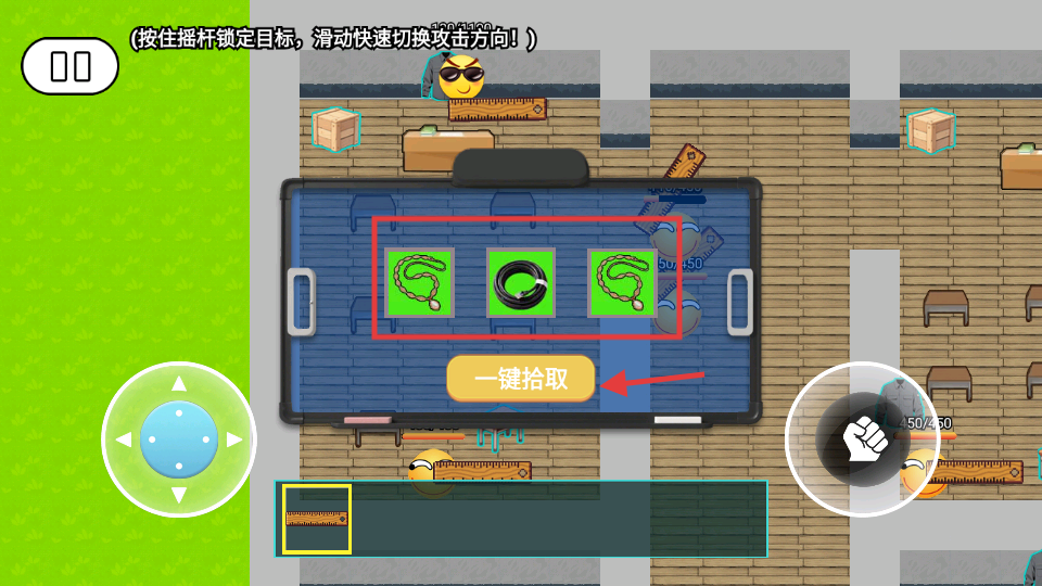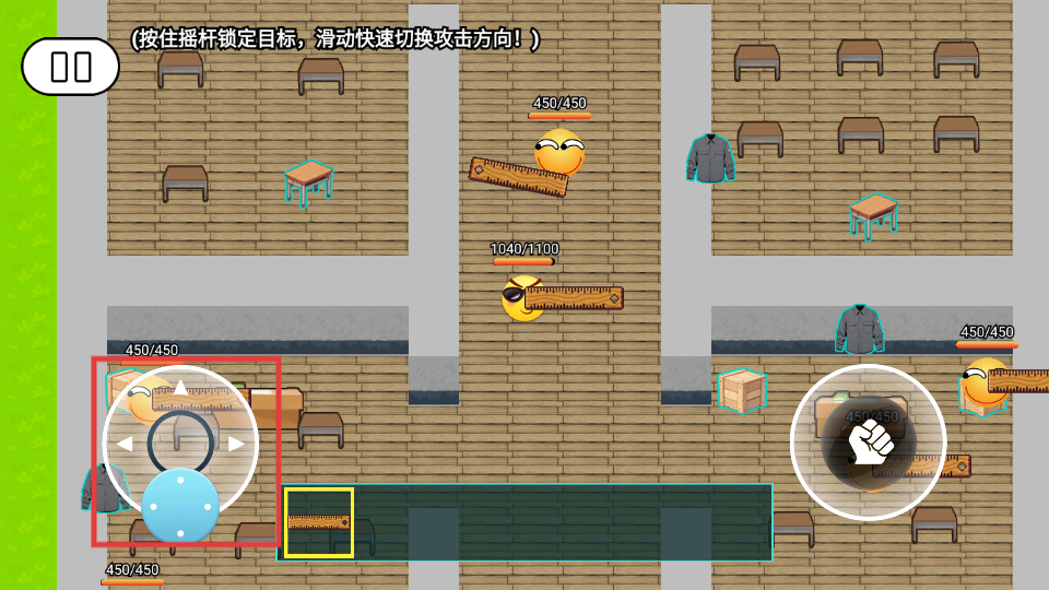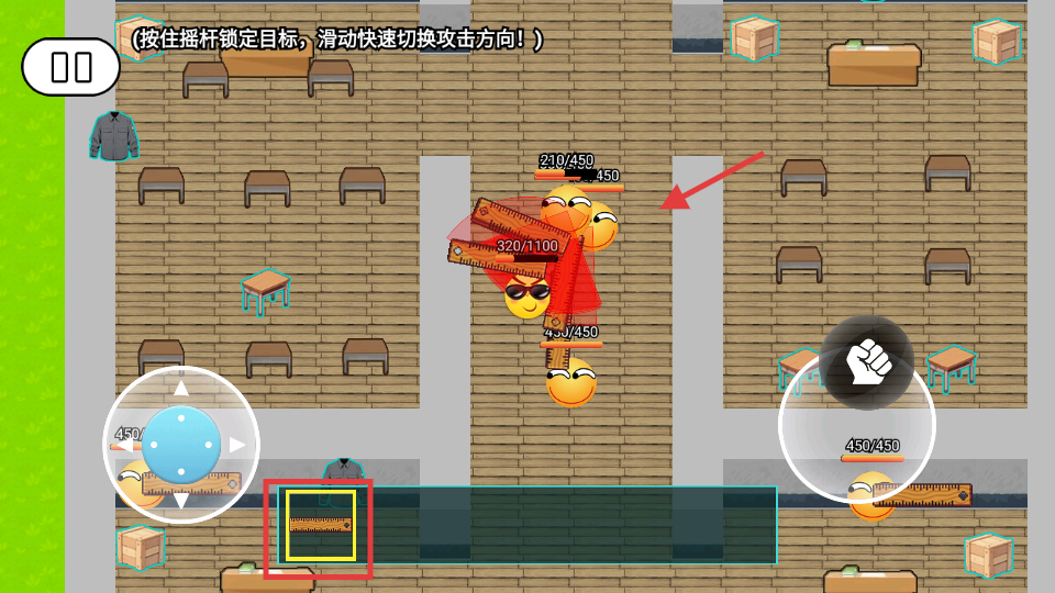2、通过左侧【摇杆】移动角色,按住摇杆锁定目标,滑动可快速切换攻击方向。