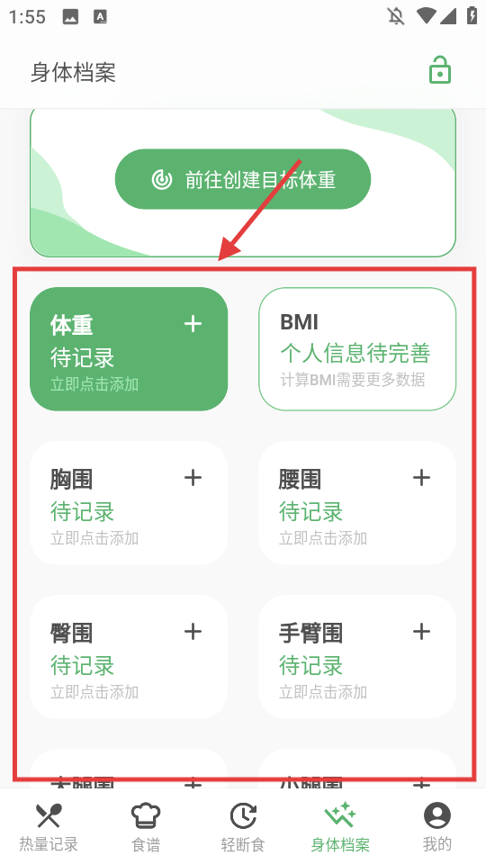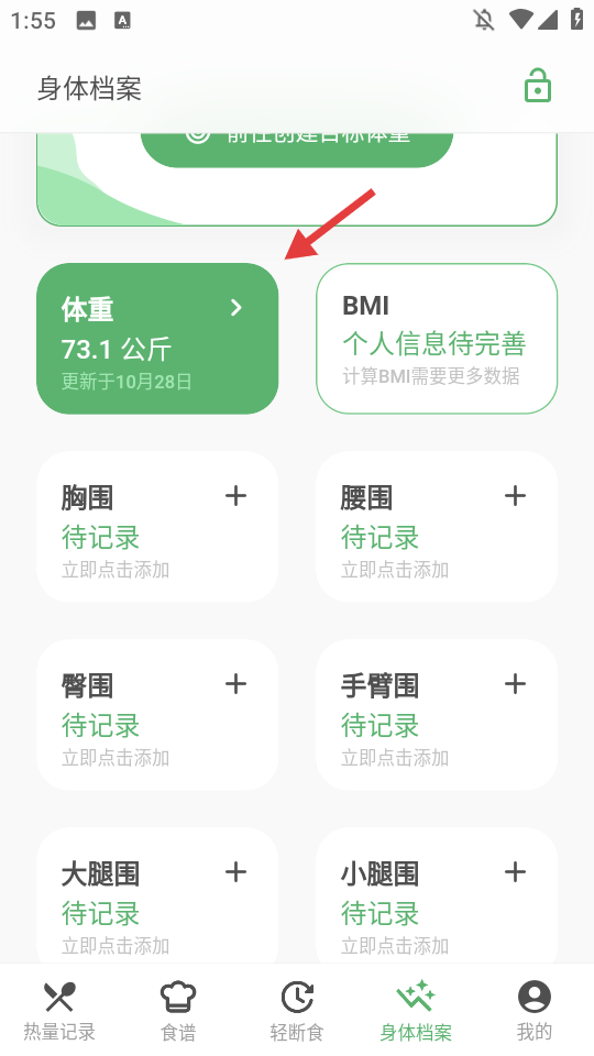 1、点击【身体档案】,进入身体档案页面。