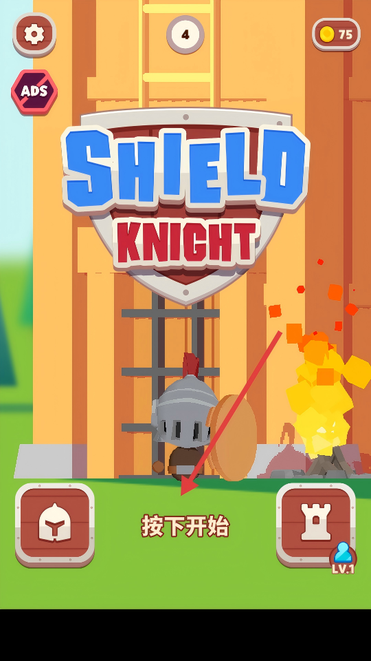 盾牌骑士是一款以盾牌防御为核心的休闲攀爬游戏,玩家扮演骑士角色手持盾牌向上攀登高塔,同时抵御来自上方的敌人攻击。游戏采用卡通风格的画面设计和简单的单手操作方式,需要合理运用盾牌格挡箭矢并把握攀爬节奏。通过击败敌人获取金币可以升级盾牌和装备,体验刺激的城堡征服冒险。