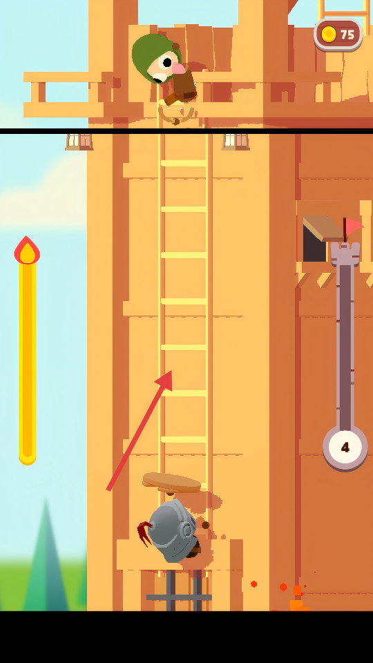 1、盾牌防御机制:盾牌骑士以盾牌格挡作为核心玩法,需要精准判断箭矢轨迹并及时举盾防御,保持攀爬进度不受阻碍。