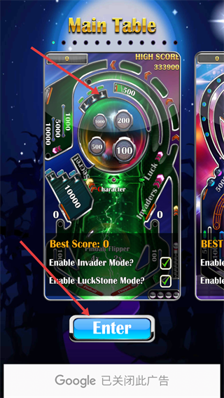 2、选择MainTable,点击【Enter】按钮,进入弹球台。