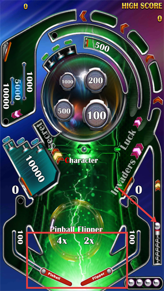 3、操控底部的弹球杆,发射弹球,让弹球在台面上移动。