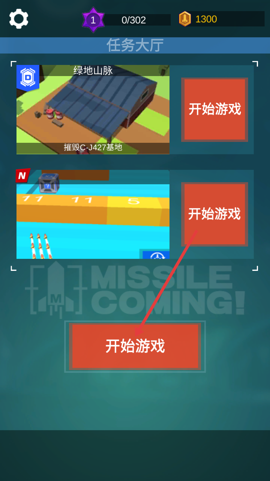 2、在任务大厅点击【开始游戏】,进入关卡。