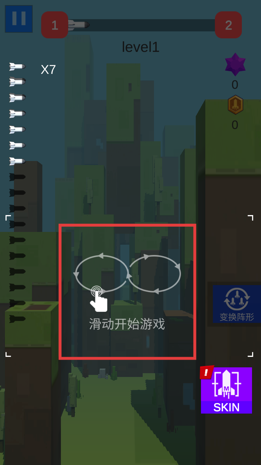3、在【level1】中,滑动屏幕开始游戏。
