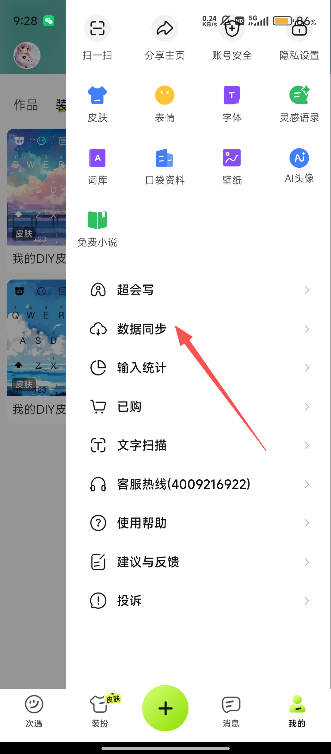 1、打开百度输入法,点击右下角【我的】,进入个人界面,这是同步词库的第一步哦。