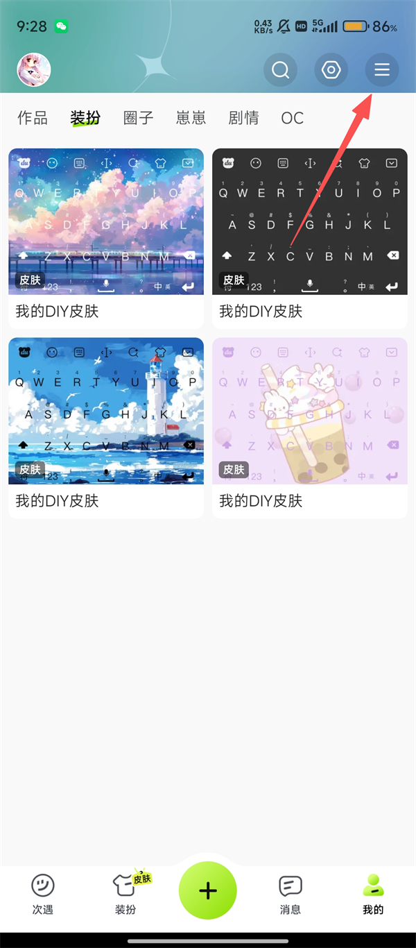 2、在个人主界面,点击右上角【菜单】按钮,展开功能列表,方便我们找到数据同步入口啦。