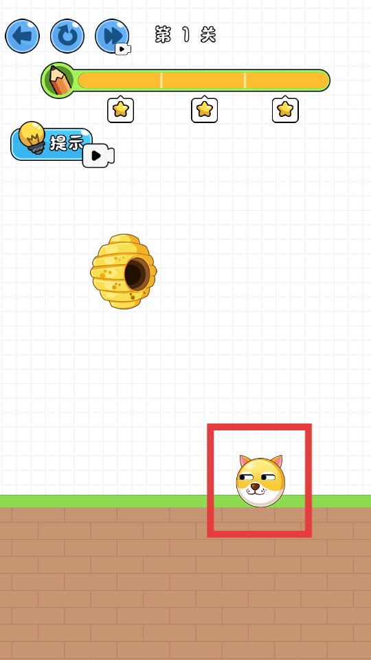 2、进入关卡后,观察场景,利用划线的方式保护红框内的小猫,避免其被蜜蜂攻击。