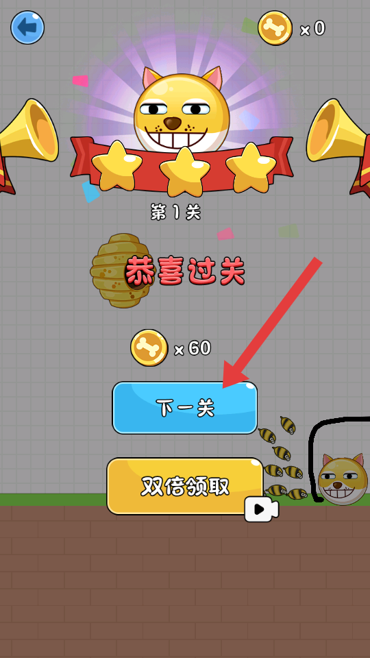 4、成功保护小狗通过关卡后,点击【下一关】按钮,解锁后续关卡。