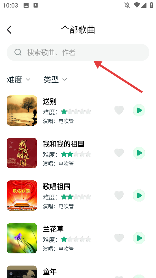 1、在首页点击【更多乐谱】,进入全部歌曲页面。