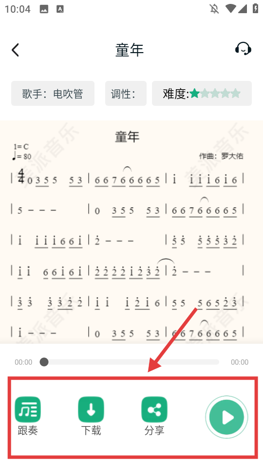 4、可使用【跟奏】【下载】【分享】功能,来进行练习。