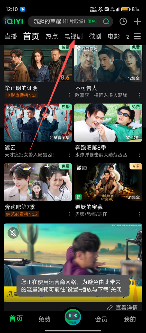 1、我们打开爱奇艺后,能通过顶部【电视剧】等导航栏切换内容分类哦。