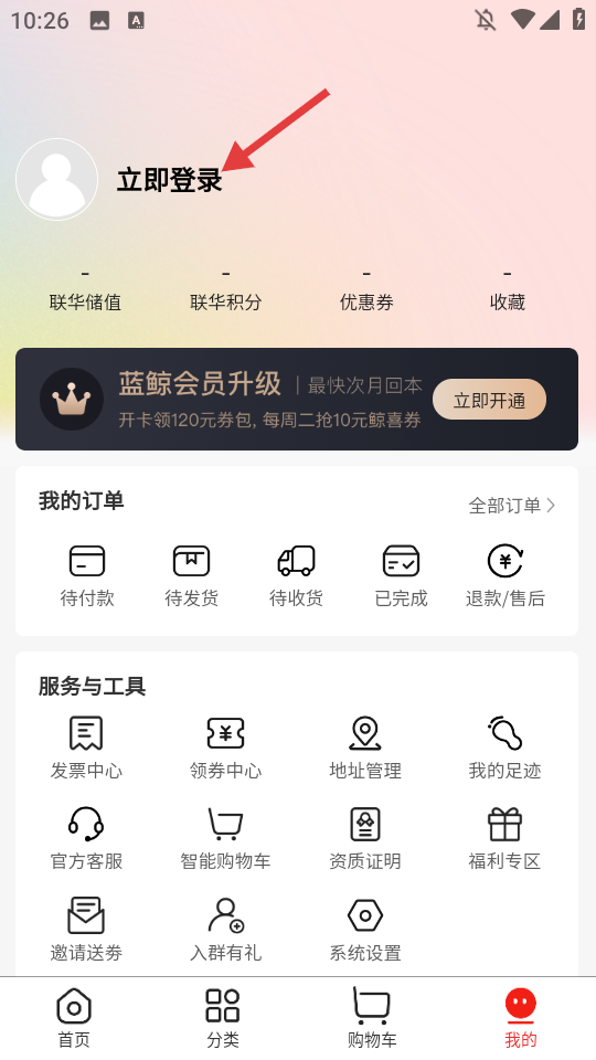 2、在个人页面点击【立即登录】,进入用户登录界面。