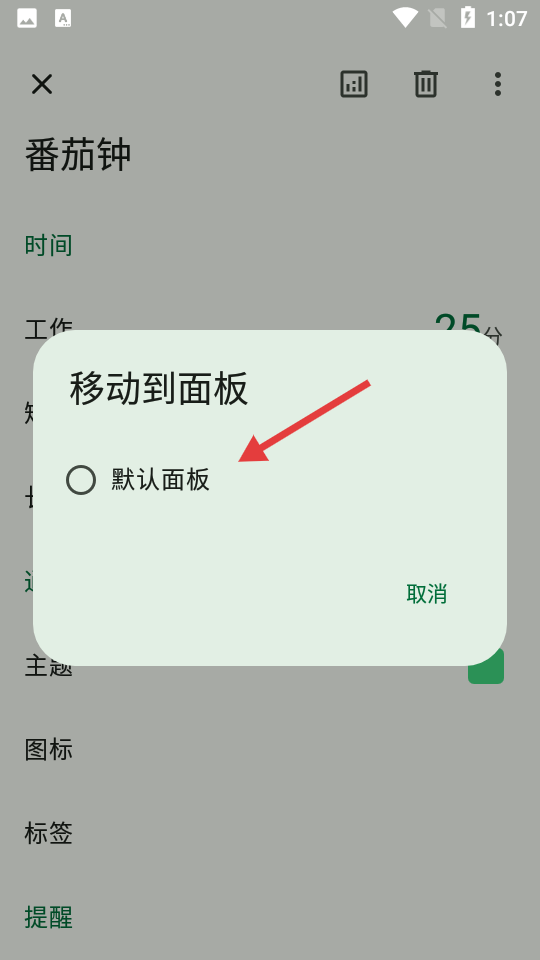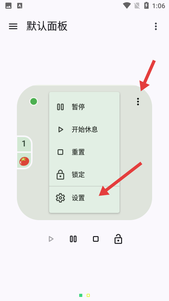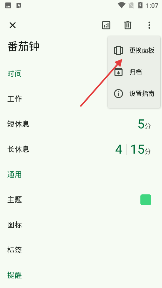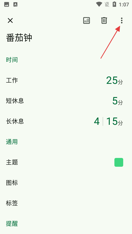 2、在番茄钟设置页面点击右上角三点图标,展开功能菜单。