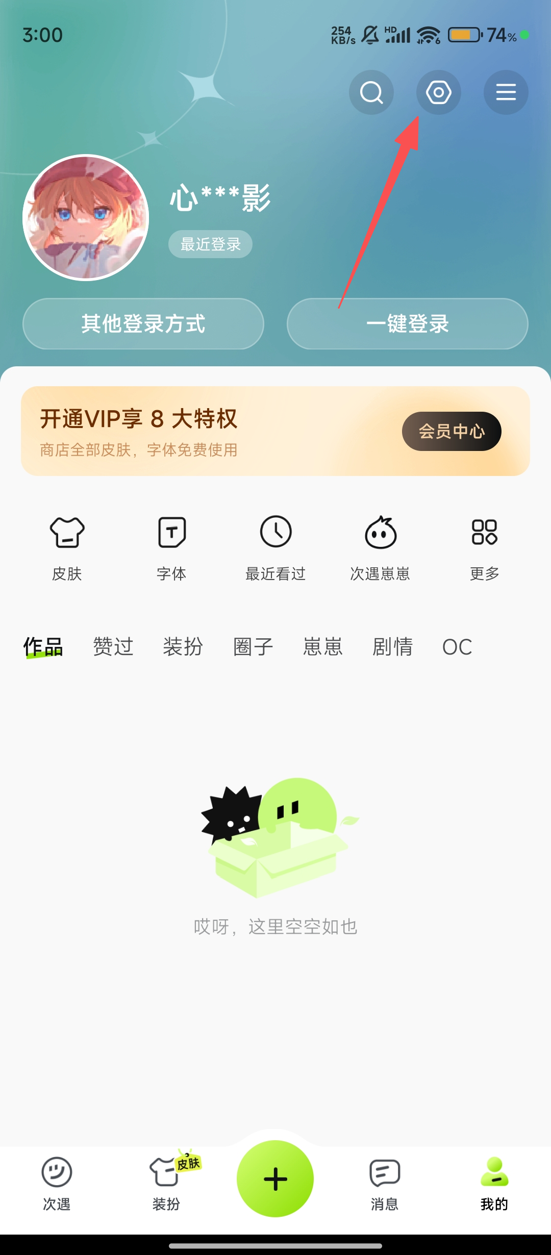 2、在个人页面,我们找到设置图标并点击,就能进入设置界面,找到百度输入法的相关选项啦。