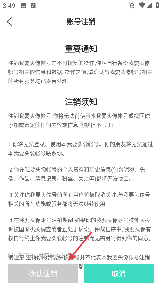 4、阅读重要通知和注销须知,点击【确认注销】,完成账号注销操作。