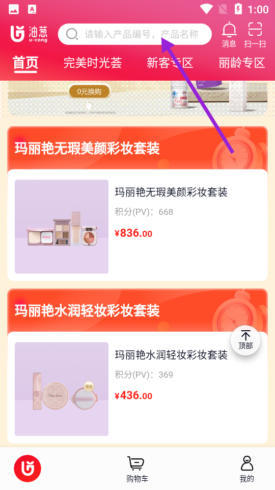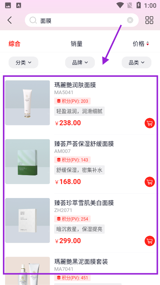2、在搜索界面输入关键词后,可获取相关商品列表。
