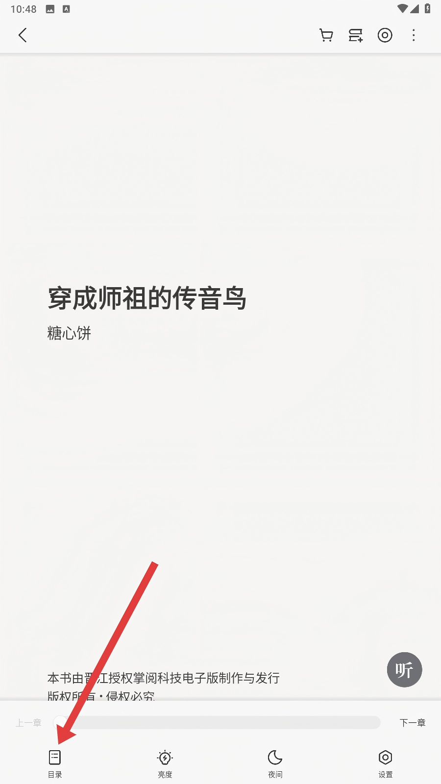 3、进入阅读界面后,点击页面左下角【目录】按钮,即可展开目录列表哦。