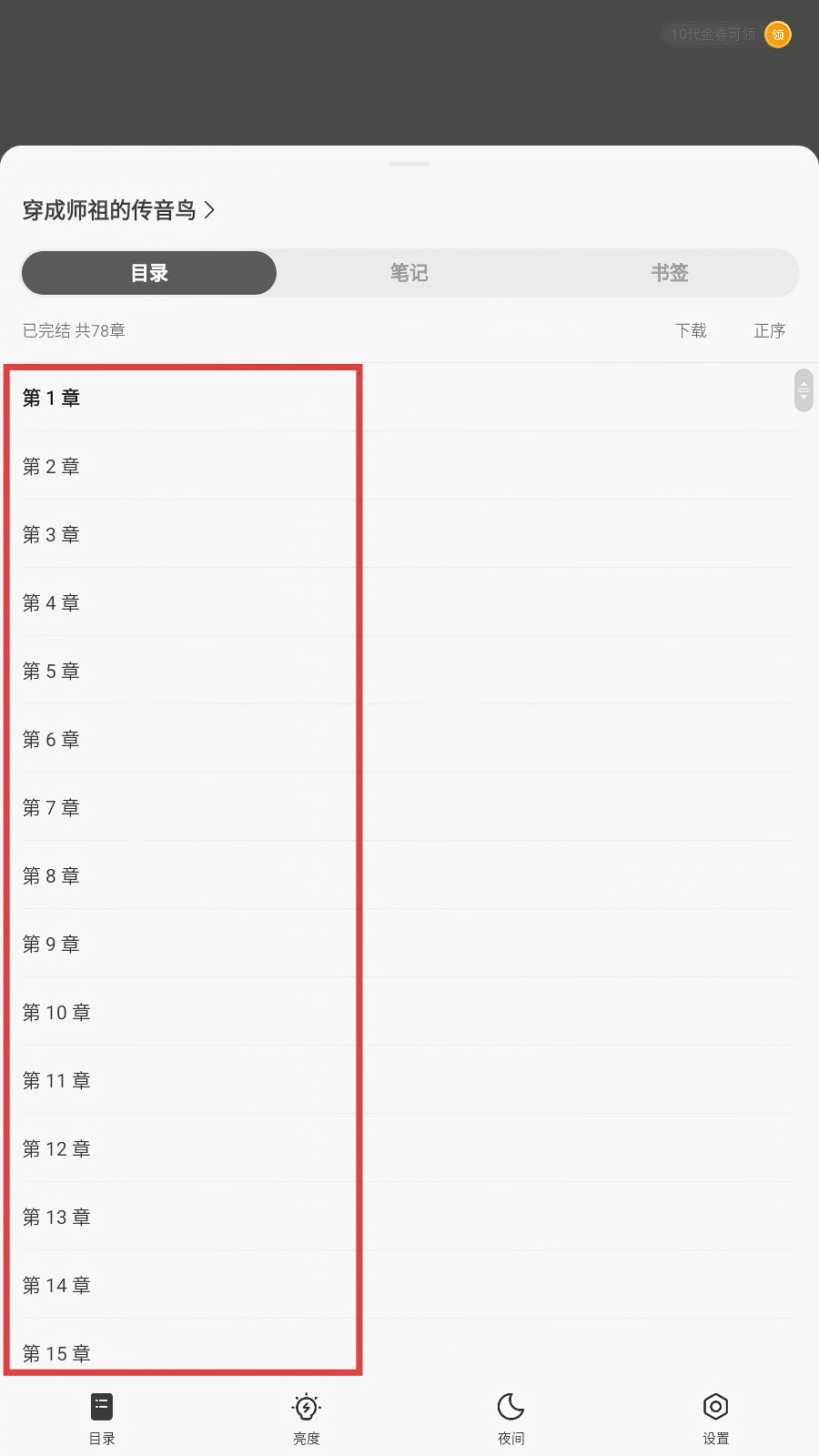 4、展开目录后,我们可以在列表中选择【第1章】、【第2章】等章节,快速跳转阅读,方便又快捷啦。