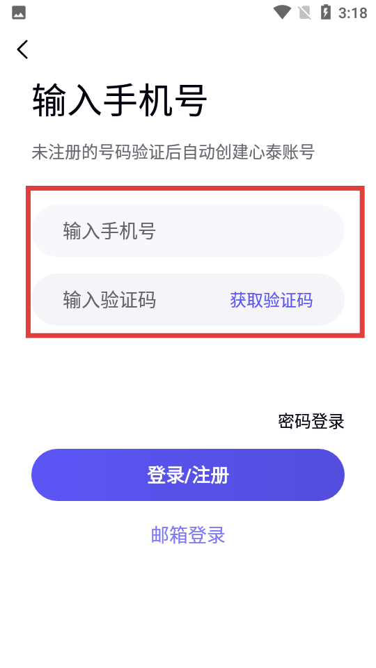 2、在输入手机号页,依次填写【手机号】、获取并输入【验证码】。