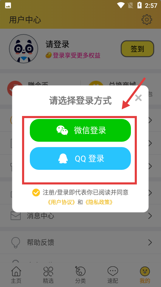 4、选择登录方式(如微信登录、QQ登录),完成账号登录。