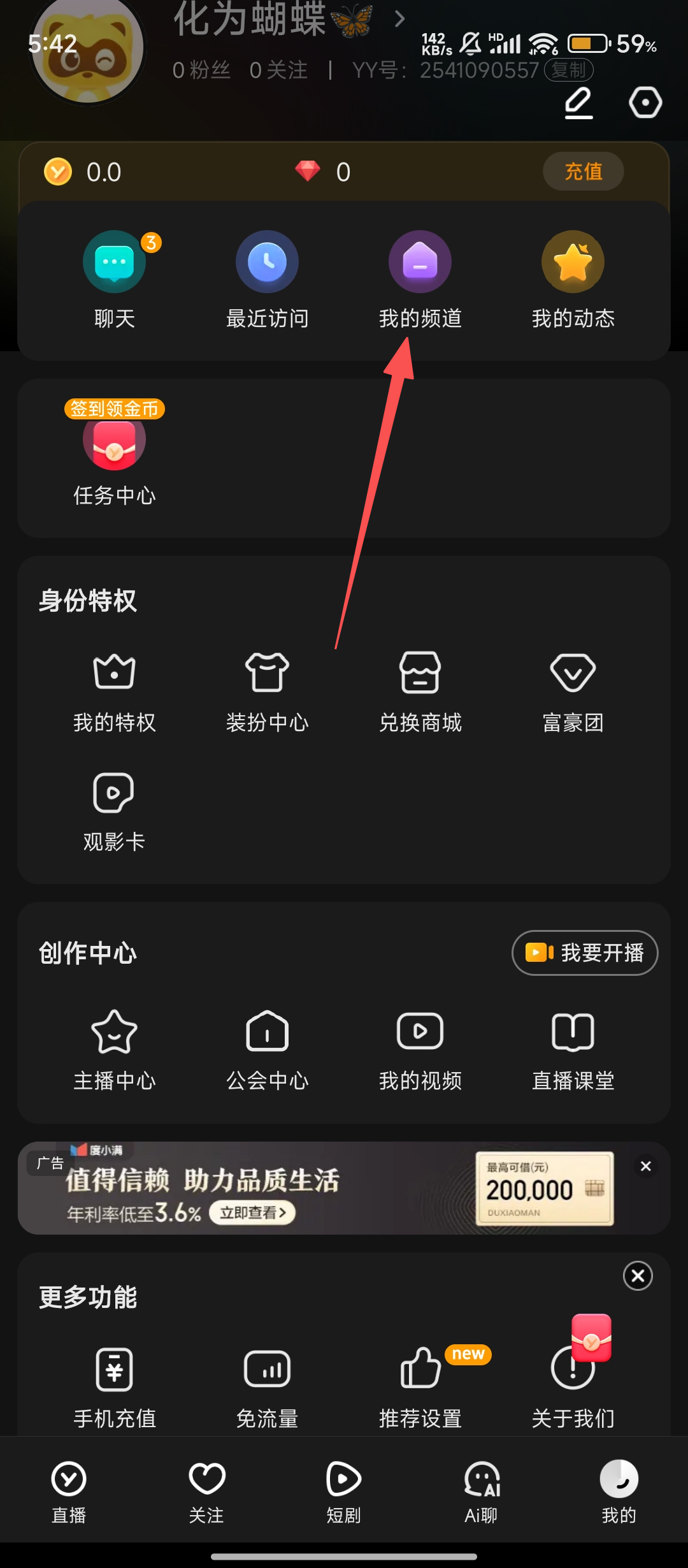 2、进入个人中心后,找到【我的频道】选项,点击进去吧。
