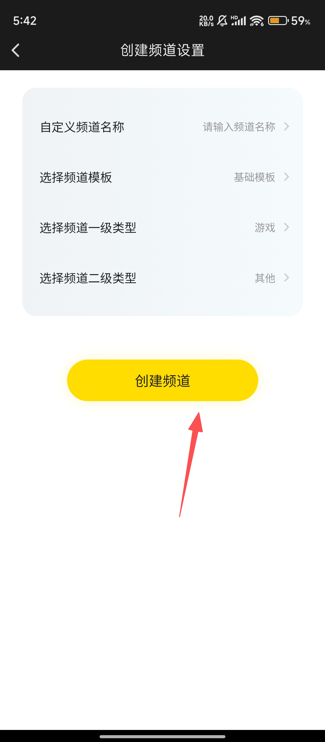 4、按照提示完成所有设置后,点击【创建频道】,就能成功拥有自己的YY频道,开启频道运营之旅吧。