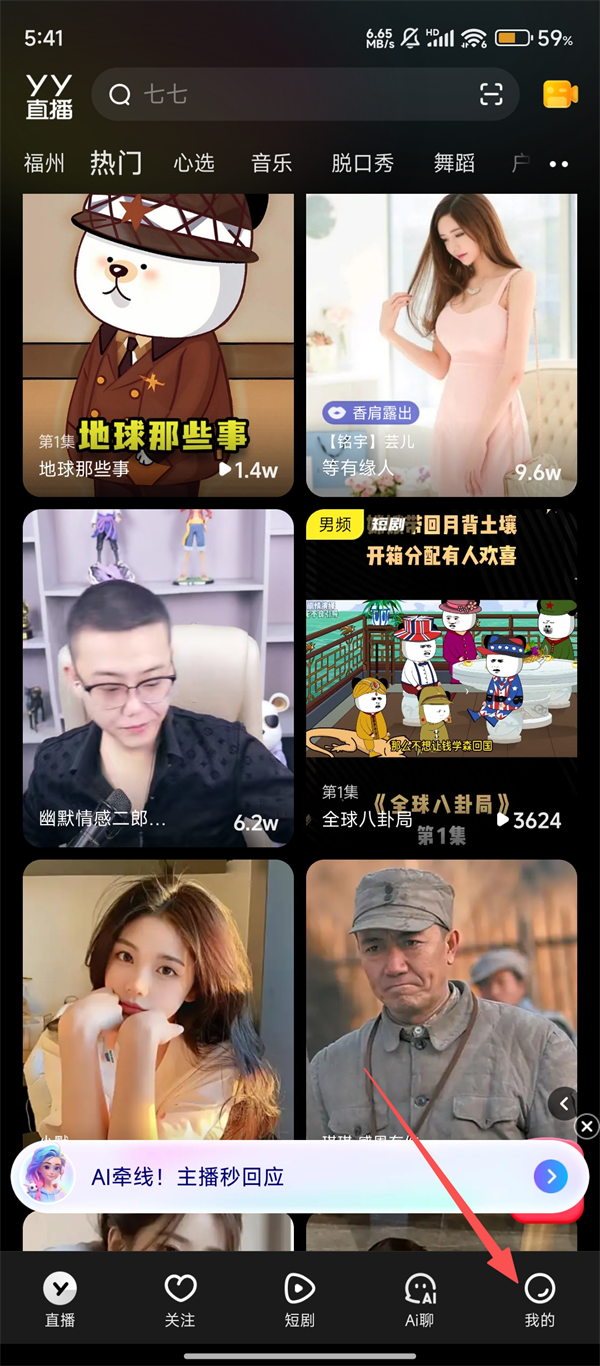 1、打开【YY】App,点击下方【我的】进入个人界面,寻找创建频道的功能入口哦。