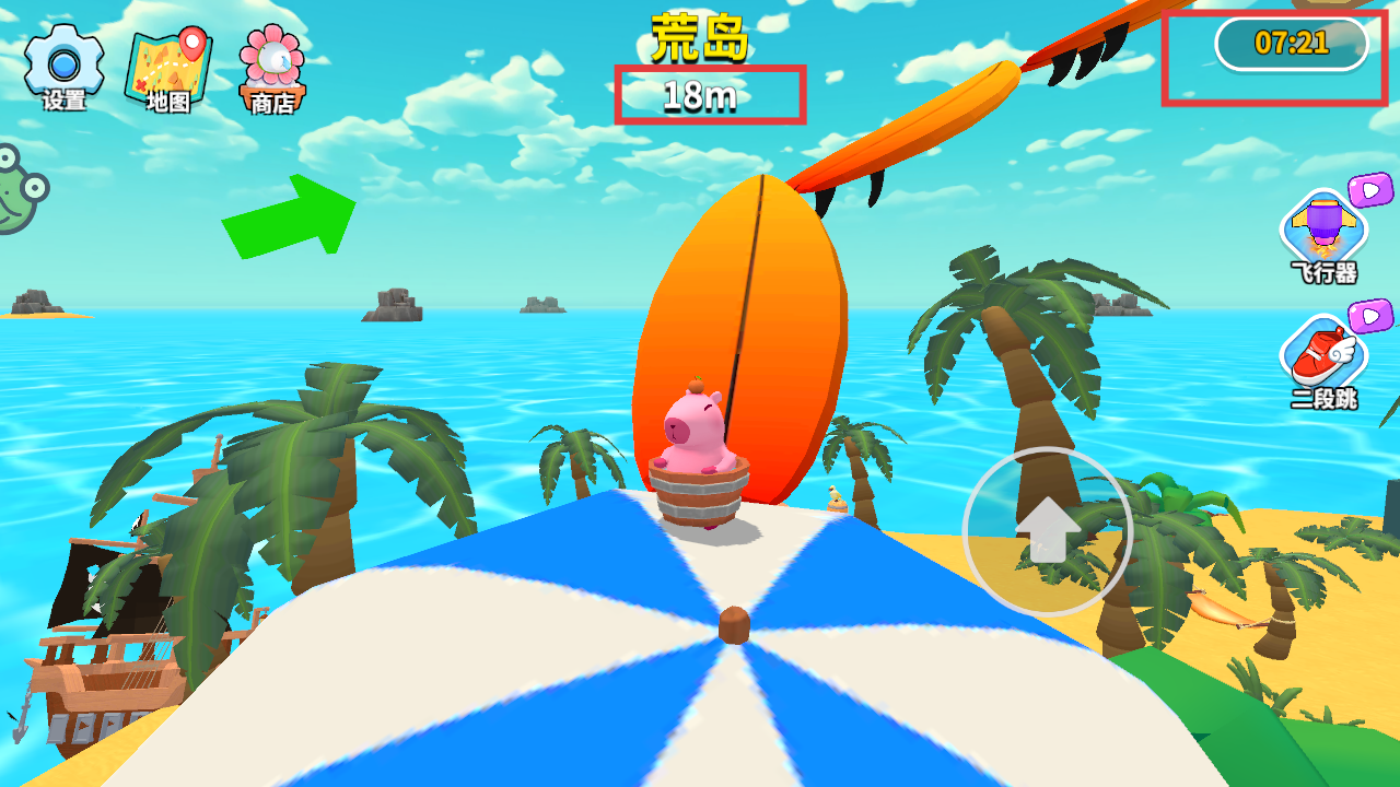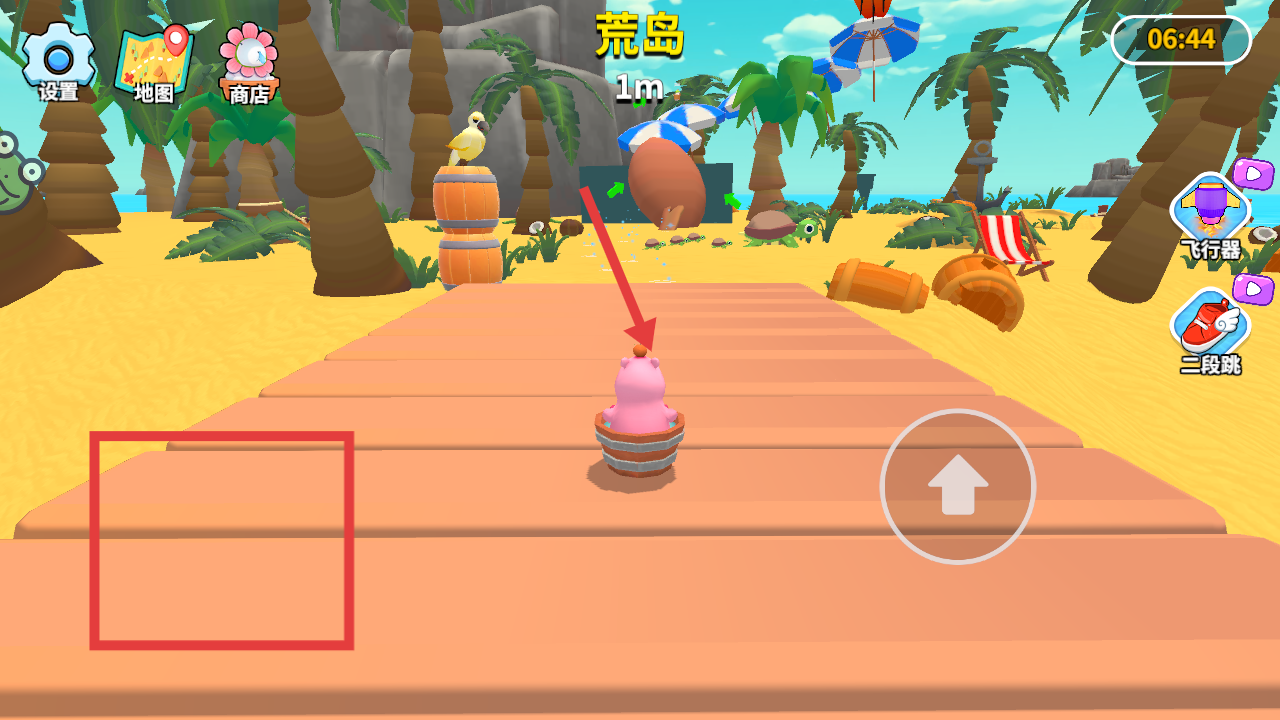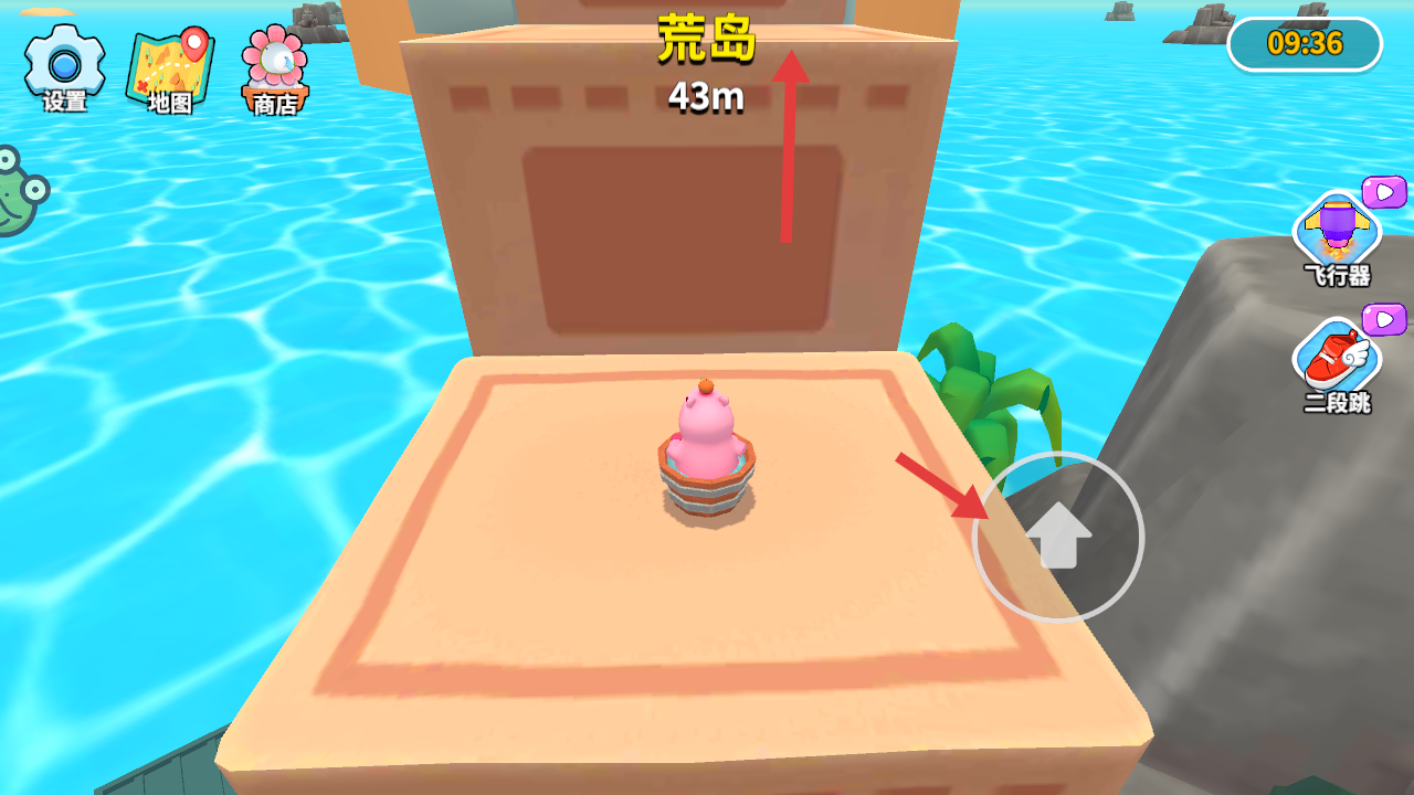 3、遇到高台时,点击跳跃按钮,让角色向上跳跃。