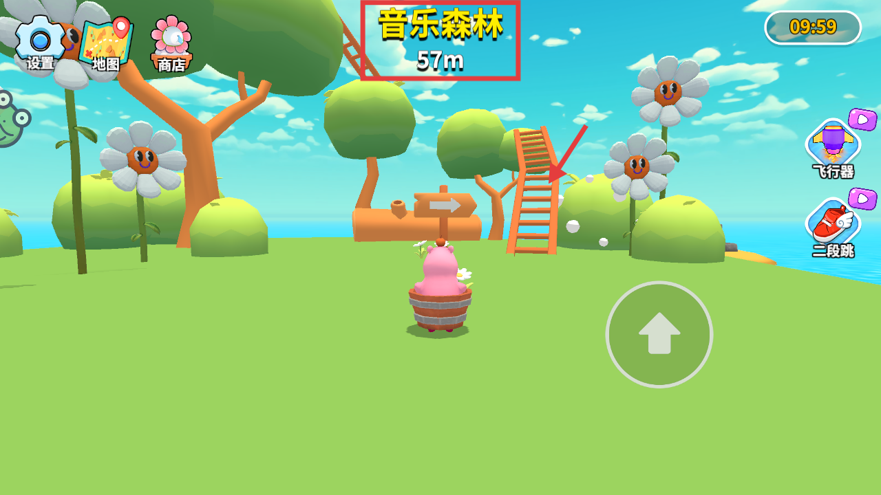 4、到达【音乐森林】区域前,通过梯子继续前进。